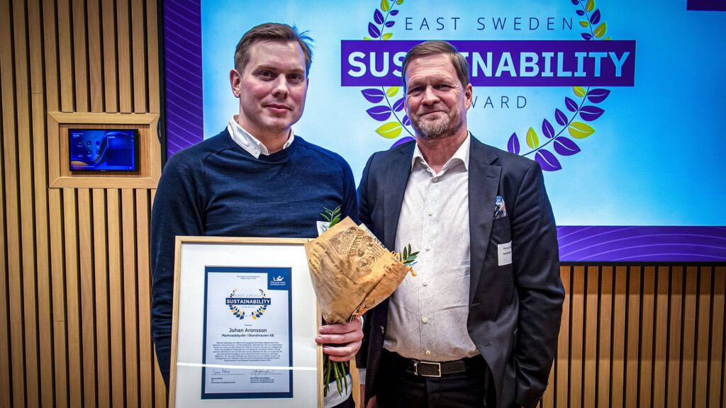 För några veckor sedan fick Johan motta Östsvenska Handelskammaren hållbarhetspris East Sweden Sustainability Award. Motiveringen var omfattande och personlig, mycket inspirerad av nomineringen – som kom från en av Johans medarbetare.