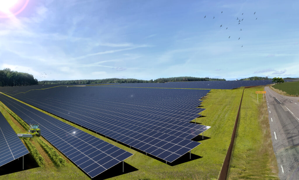 (Bilden är en visualisering av den framtida solcellsparken.)