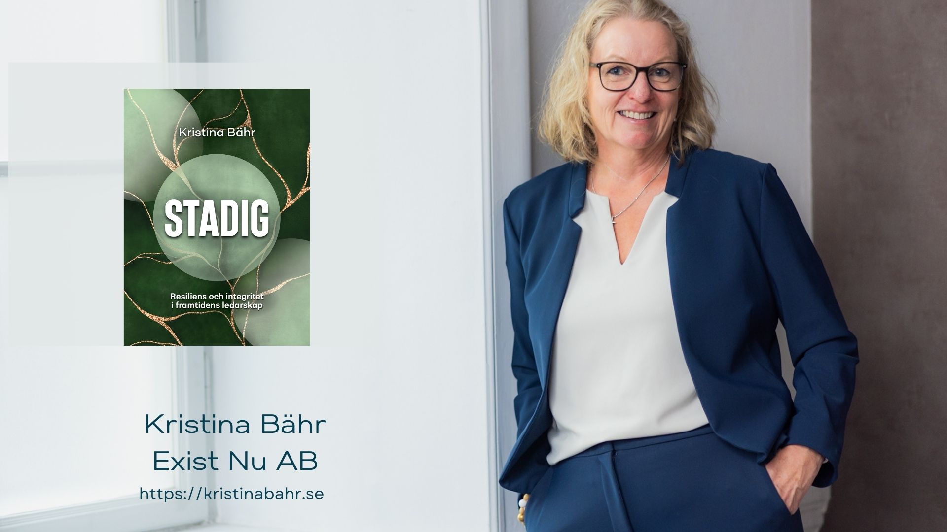 Kristina Bähr är specialist i barn- och ungdomsmedicin med bakgrund från bland annat Astrid Lindgrens barnsjukhus. Sedan 2010 driver hon Exist Nu där hon föreläser, utbildar yrkesverksamma och handleder chefer och ledare. Stadig är hennes femte bok.