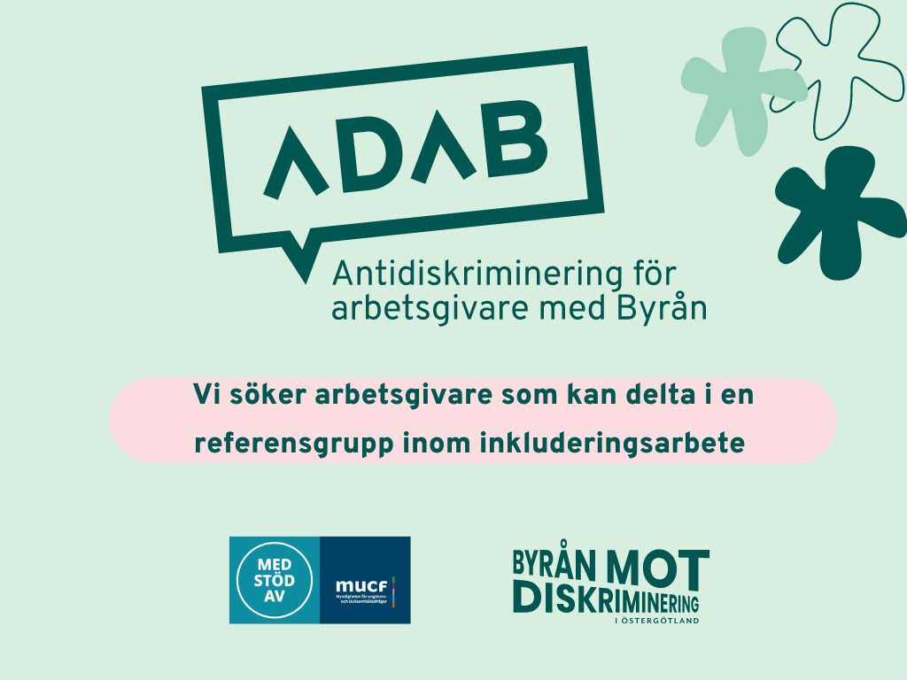 Är du intresserad av att vara med i vår referensgrupp? Kontakta snarast Karin Granholm, projektledare för Adab och utbildningsansvarig på Byrån: karin.granholm@diskriminering.se