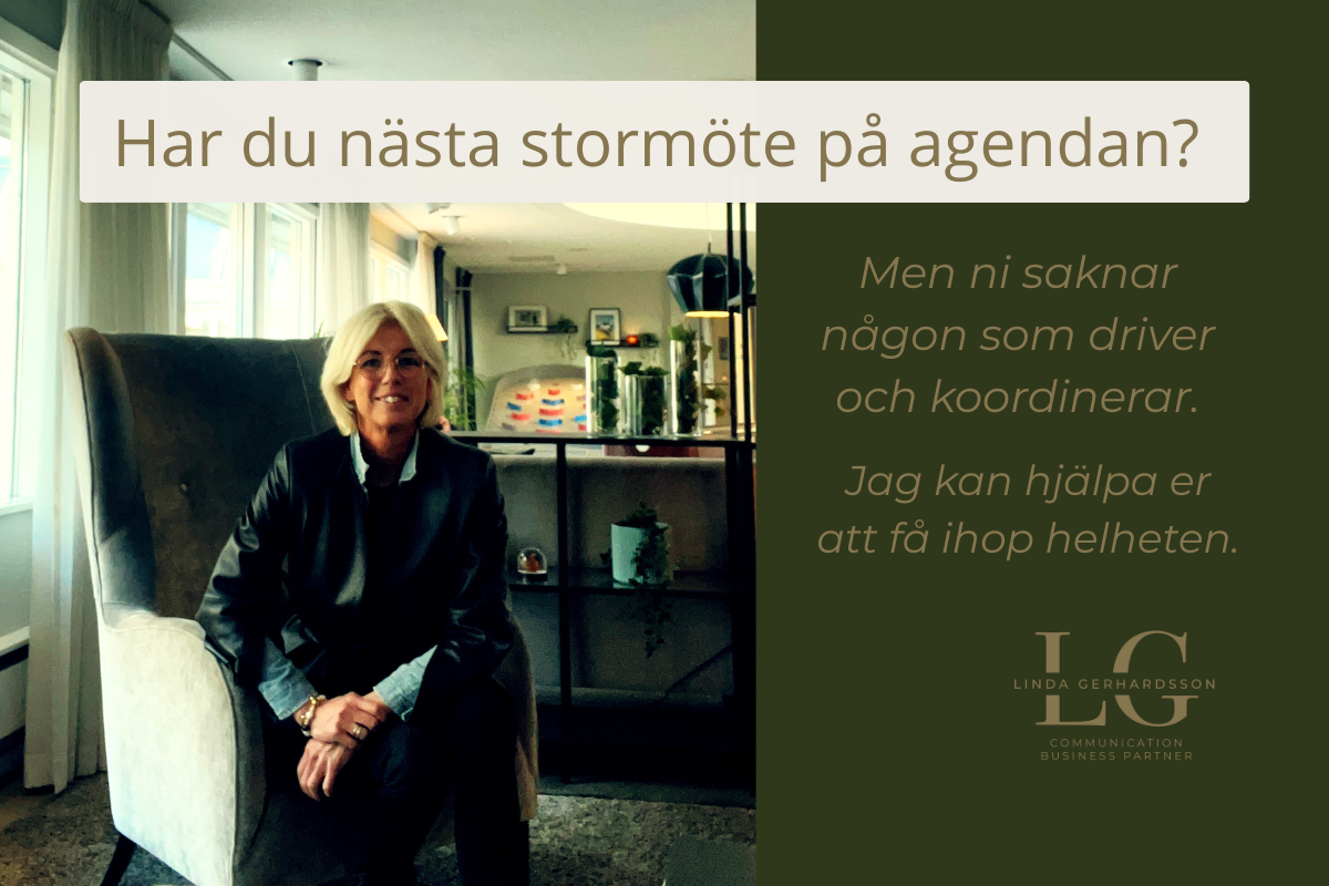 Har du nästa stormöte på agendan men saknar någon som driver och koordinerar helheten? Då är du varmt välkommen att höra av dig.