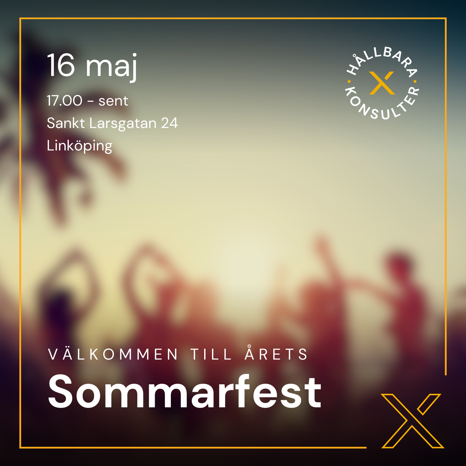 Välkommen till årets Sommarfest hos oss på XLENT! Du kommer bli inspirerad till en mer hållbar arbetskultur av föreläsaren Andreas Jonsson samtidigt som du äter god mat, nätverkar med andra inom vår bransch och lyssnar på livemusik. Dessutom kommer du få konkreta tips och verktyg för hur ni kan trivas bättre på jobbet. Möt våra kompetenta och hållbara konsulter och diskutera dina utmaningar och möjligheter