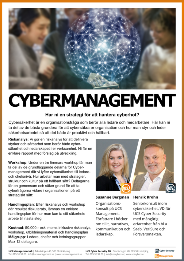 Cybersäkerhet är en organisationsfråga som berör alla ledare och medarbetare. Här kan ni ta del av de bästa grunderna för...