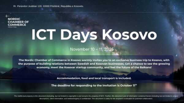 Den Nordiska Handelskammaren i Kosovo (NCC) bjuder in 5-7 svenska företag inom IKT-sektorn till ett exklusivt event på plats i...