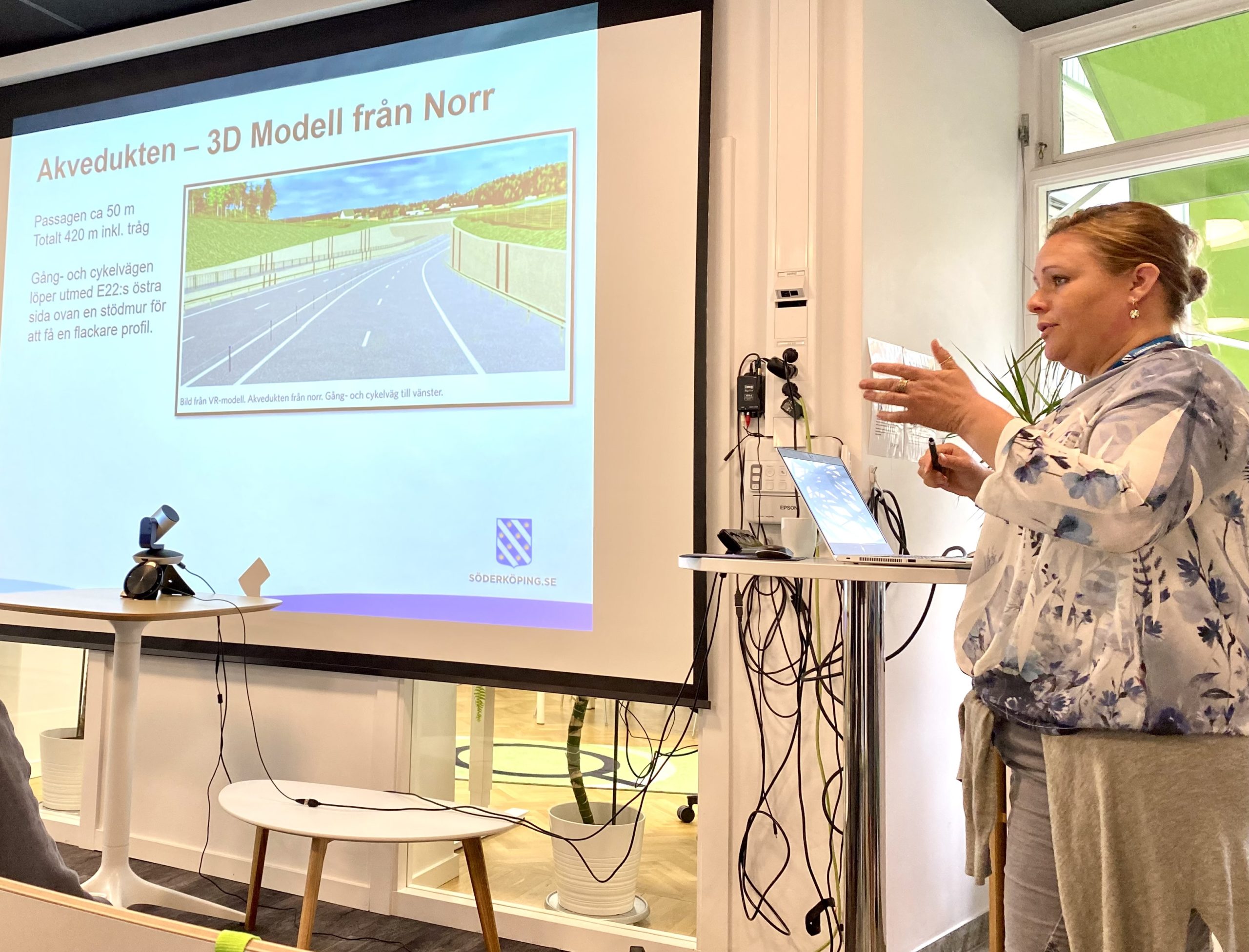 Därefter berättade Sara Norling, ny projektledare och Therese Nordgren, projektsamordnare, från Söderköpings kommun mer detaljerat kring olika moment kopplat till det omfattande bygget av den nya sträckningen. Några av de större punkterna handlade om den akvedukt som innebär att E22 dras tio meter under Göta kanal. Där har Trafikverket lovat att kanalen kommer att hållas säsongsöppen som vanligt under byggtiden. De större utmaningarna handlar om att säkerställa att grundvattnet inte påverkas eller förorenas i schaktarbetet.